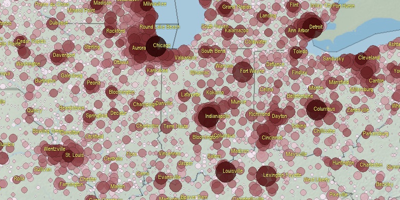 **Some cities are placed on more than one county. Only 1 county is shown.