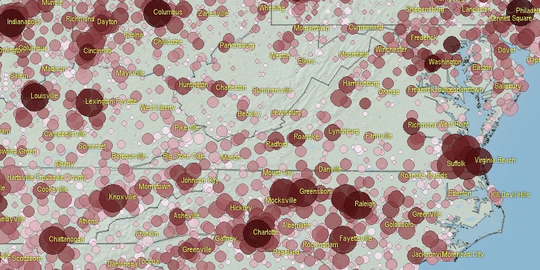 **Some cities are placed on more than one county. Only 1 county is shown.