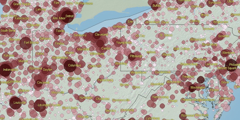 **Some cities are placed on more than one county. Only 1 county is shown.