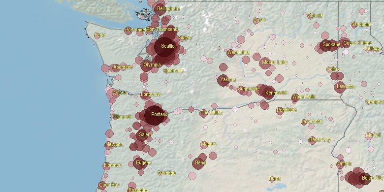 **Some cities are placed on more than one county. Only 1 county is shown.